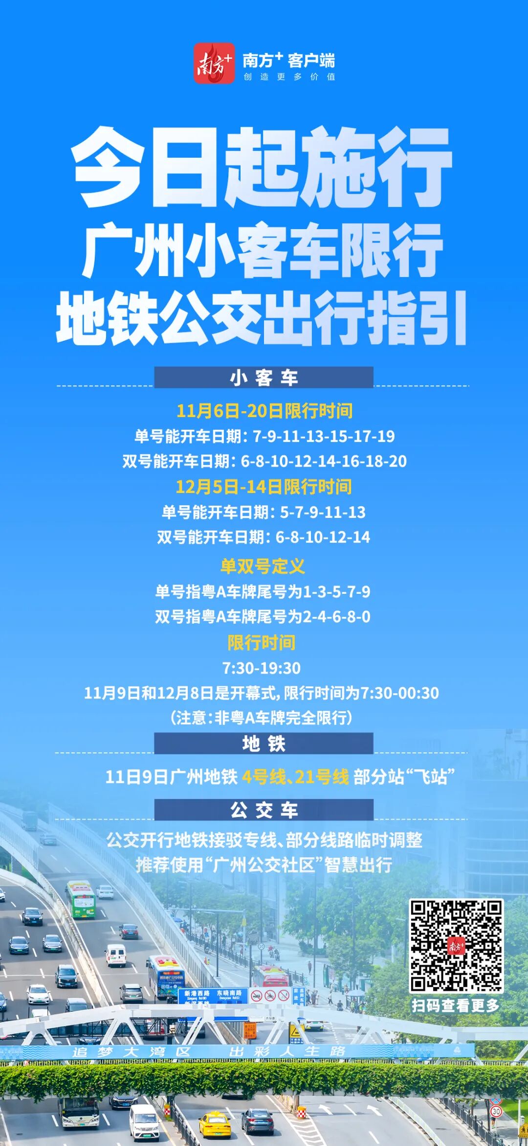 11月6日,根据《广州市人民政府关于十五运会和残特奥会期间广州赛区实施机动车临时交通管理措施的通告》,广州在赛会期间每日7时30分至19时30分对全市主要路段进行限行,外地车禁止通行,本市机动车按照单双号通行。限行首日,本地车辆按照“双号双日”(尾号为2、4、6、8、0)进行通行。