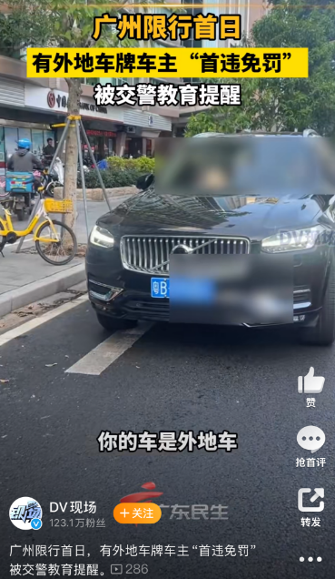 但是,也有网友发现,限行首日限行时段仍有单号车辆在路上行驶。根据限行规定,限行前三日施行“首违免罚”——对于违反小客车、货车限行措施及专用车道管理规定的行为,广州交警在11月6日至11月8日(十五运会阶段前3日)和12月5日至12月7日(残特奥会阶段前3日)期间,实施“首违免罚”,即3日内产生的第一次违法,仅作教育提醒,不予处罚。
