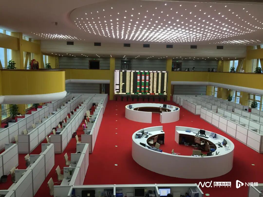 和其外观一样夺目,广州圆大厦的内里装潢也显奢华。大堂里超大超长的“百花齐放”屏风,由江苏扬州一家机构赠送。在一间办公室里,棕黄交错的地毯,宽大的红木家具搭配带有刺绣明黄色的坐垫、靠垫,特意营造出贵气。在双层中空的塑料交易大厅,从红地毯上的白色工位,到明黄色的走廊外墙,还有近年突然爆火流行的天幕星空顶,无不预示着广州圆大厦设计的超前。而交易大厅内两端实时滚动的巨幅显示屏,可能每一分钟都在上演着财富故事。