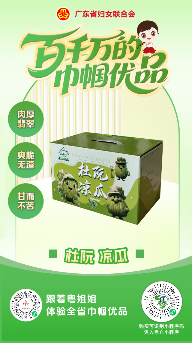 杜阮凉瓜是国家地理标志农产品,以其外观条纹清晰、肉厚翡翠、爽脆无渣、甘而不苦的特色深受喜爱。上巷村作为核心产区,通过“四个统一”模式打造品牌,并成功备案供港澳蔬菜种植基地。产业链延伸出凉瓜茶、凉瓜面等30多种产品,农文旅融合还催生了凉瓜小馆、研学路线及“凉瓜蛋挞”等特色糕点,吸引众多游客。识别下图右侧葵花码即可进入官方小程序购买。