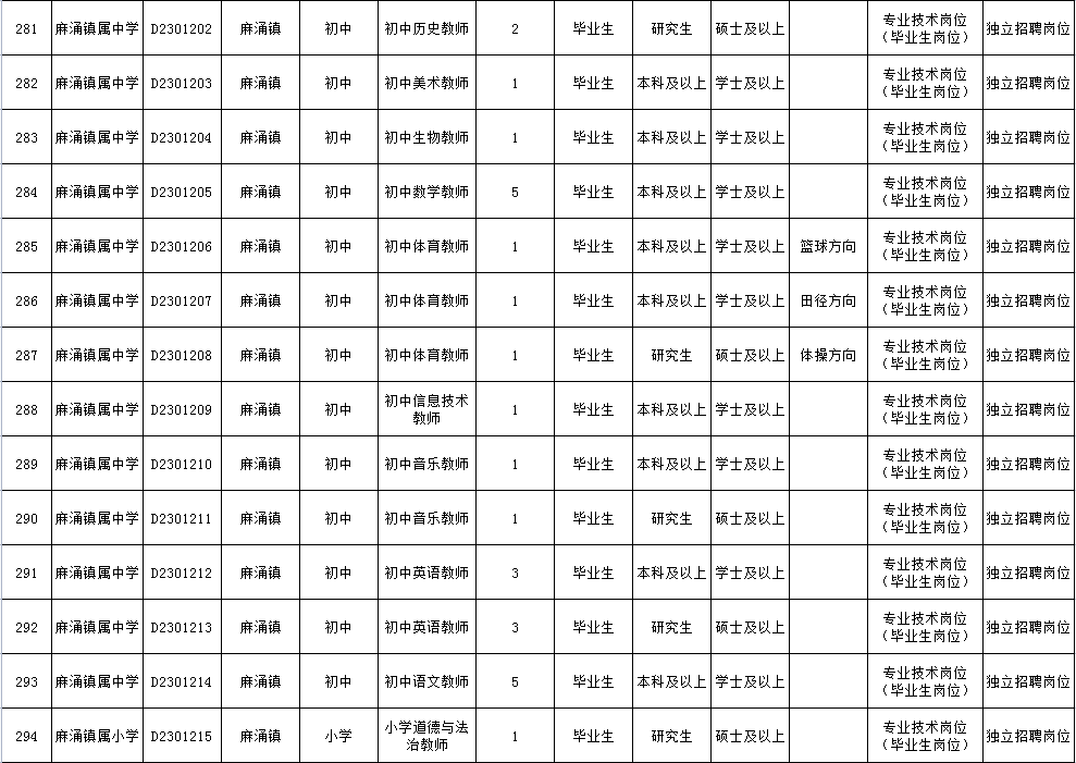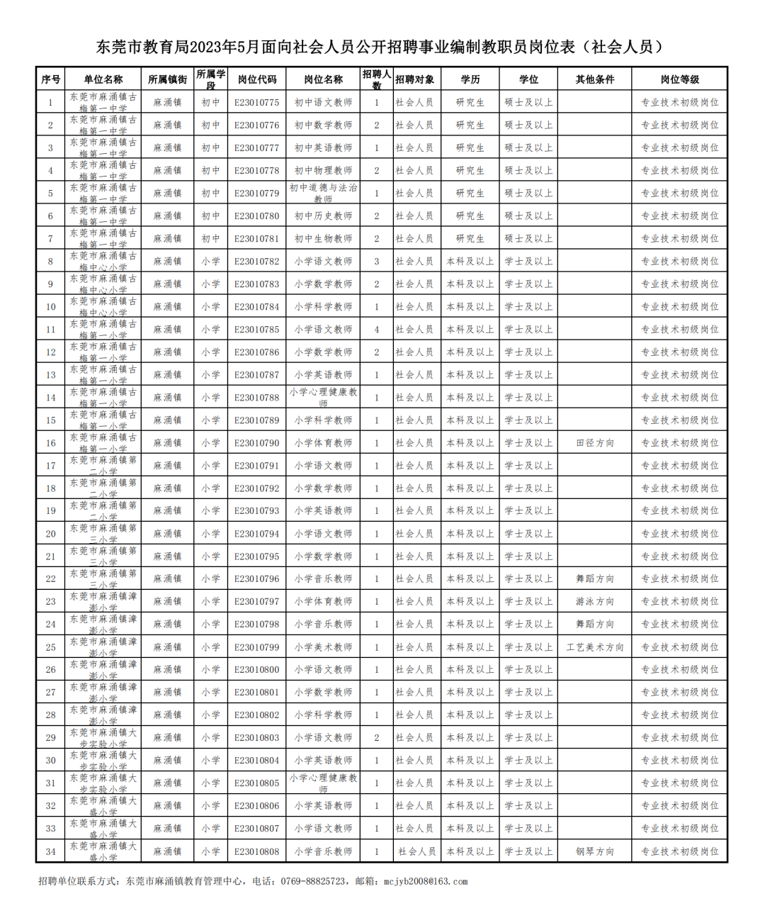 为确保麻涌镇属公办学校教育教学需求,进一步推进麻涌镇教育高质量发展,在市教育局的统筹下,麻涌计划于2023年5月赴长沙(湖南师范大学)和南昌设点面向全国优秀毕业生公开招聘事业编制教师76人,其中公办初中岗位45个,公办小学岗位31个。