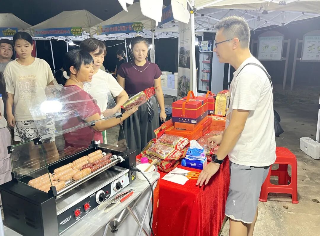 特色美食摊位云集了暖记腊肠、创新八宝盒以及新推出的爆汁香肠等产品。“借助常平啤酒嘉年华的人流对企业新产品进行推广,效果非常好。”该摊位工作人员说,暖记腊肠已有85年历史,获评首批“东莞优品”企业,其制作技艺入选市级非遗名录,希望有更多人来品尝常平“老字号”的味道。
