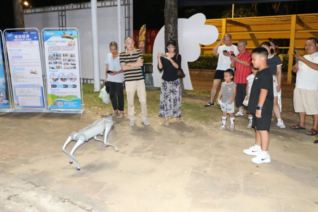 互动科技展位现场进行异能无人机机器狗表演、足球无人机试飞体验等,并与现场小朋友进行互动,赢得了小朋友一致点赞。