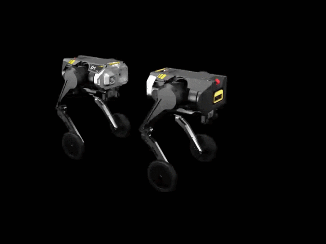 D1突破固化机种限制,可实现轮足-轮足、足式-足式、轮足-足式等多形态联合拼接协作,这种设计构建了灵活可变的运动系统,为复杂场景下延展更多应用可能,解锁更多元化玩法。