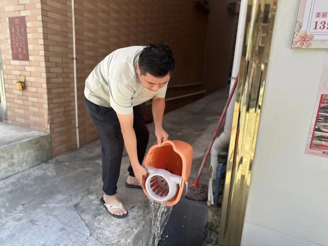 沿街商户同样积极响应。一家店铺的老板杨小姐一边擦拭玻璃门一边表示:“搞好门前卫生,既能为生意添彩,也能为十五运增光。这是我们商家应尽的责任。”