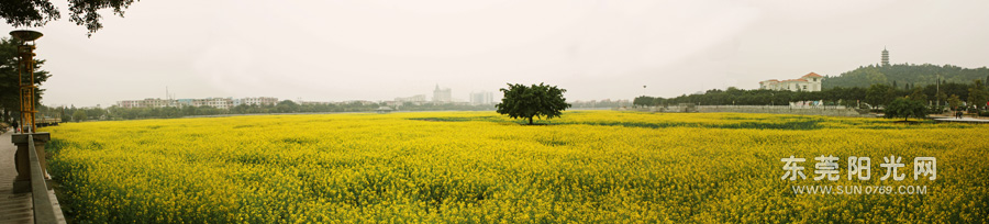 东莞阳光网讯 (记者邵蓝 通讯员 桥宣)桥头莲湖以夏季莲叶田田、荷香醉人在东莞享誉盛名。但是,没有了荷花胜景的冬季,莲湖是否只剩残荷,满目枯败呢?当然不会,现在的莲湖正是一片金色的花海,风光尤胜夏日!为丰富地方旅游文化元素,桥头镇推陈出新,于今年9月份在莲湖内播撒油菜花种,欲将三百亩莲湖打造为别具一格的油菜花田,演绎冬日里多彩缤纷的田园风光。如今,这些油菜花已经进入盛花期,三百亩莲湖成为了一片金光灿烂的油菜花田,吸引了大量游人前来观光游玩。