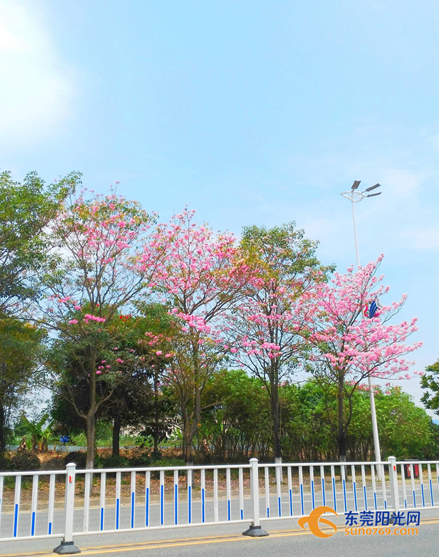 东莞阳光网讯 这里不是日本,不是武汉,这里是东莞常平镇,不同的地方,樱花却一样美丽,每天路过的市民都忍不住驻足观赏。信步走来,清风拂面,花香扑鼻,樱花瓣飘落如歌,一片凄美,地面形成厚厚粉色花瓣雪,构成了一副春意盎然的春景图。