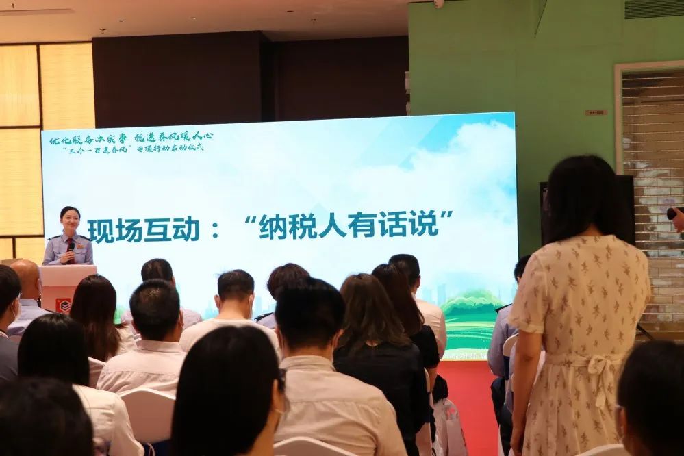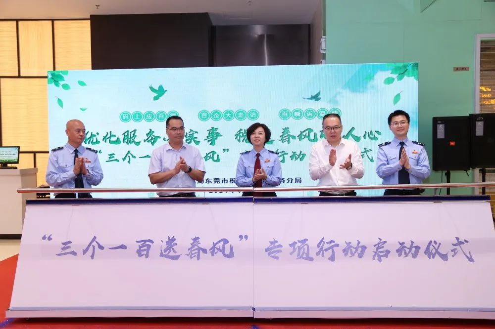 4月25日上午,国家税务总局东莞市税务局东城税务分局(以下简称东城税务分局)举办“‘码’上应百需•百企大走访•百瞬诉温情”专项行动启动仪式。