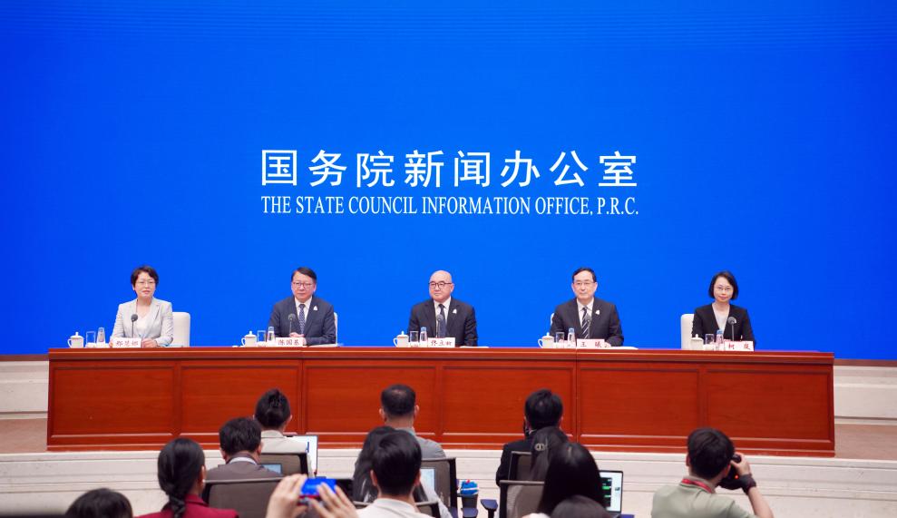 7月25日,国务院新闻办公室在北京举行新闻发布会,第十五届全国运动会组织委员会副主任、国家体育总局副局长佟立新,第十五届全国运动会组织委员会副主任、广东省委常委王曦,第十五届全国运动会组织委员会副主任、香港特别行政区政府政务司司长陈国基,第十五届全国运动会组织委员会副主任、澳门特别行政区政府社会文化司司长柯岚介绍第十五届全国运动会筹办情况,并答记者问。新华社记者 潘旭 摄