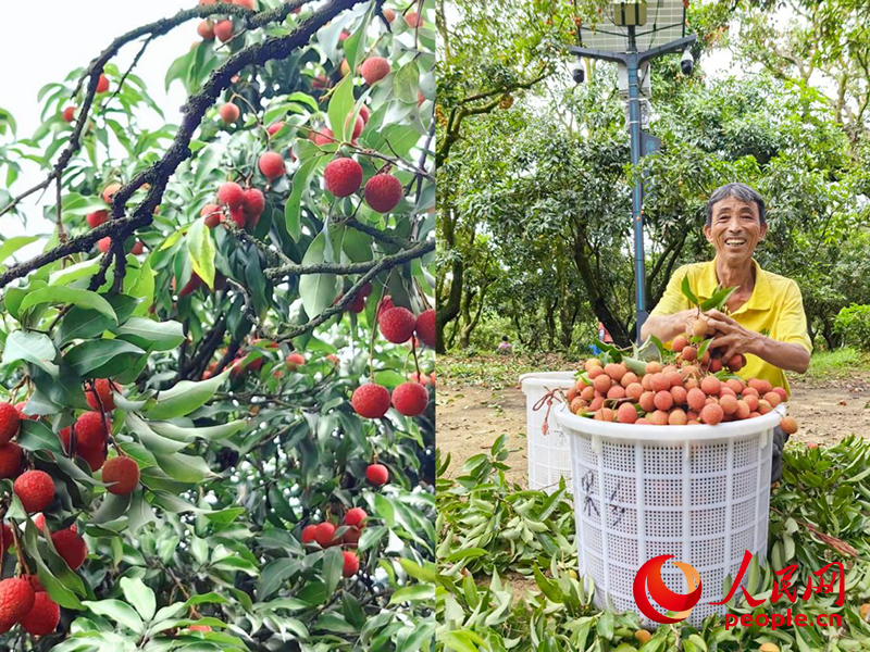 2025年5月,在广东茂名高州市根子镇贡园,荔枝丰收,农户喜笑颜开。人民网 涂胜摄