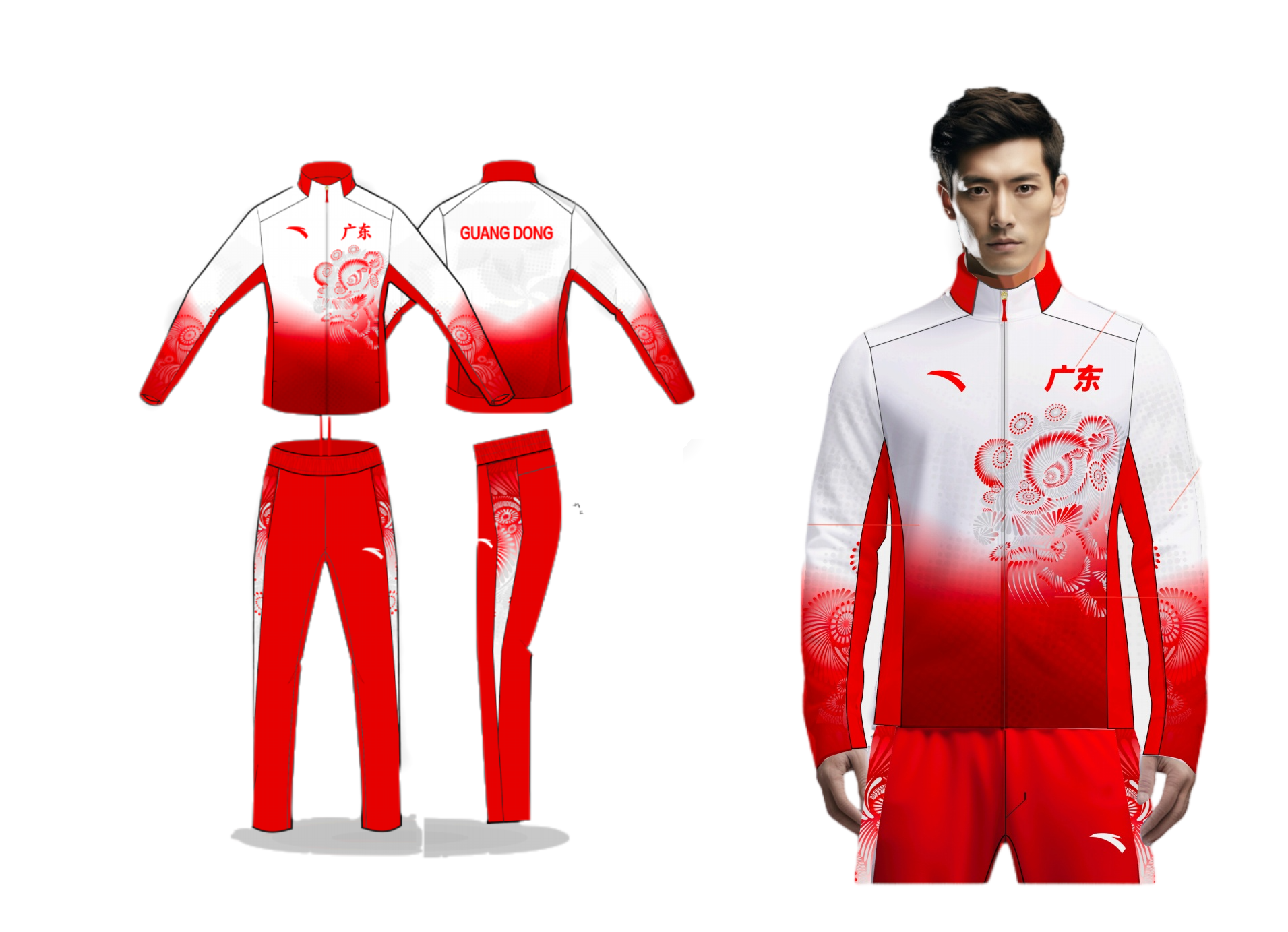 会议还介绍了本届全运会广东省代表团团服的特色。团服以红白渐变为图案基底,把广东省独特文化元素舞龙舞狮中的“醒狮”形象与全运会主视觉标识的烟花设计做结合,既有广东文化的审美特色,又寓意广东省代表团对本次全运会比赛全力以赴,再创佳绩。