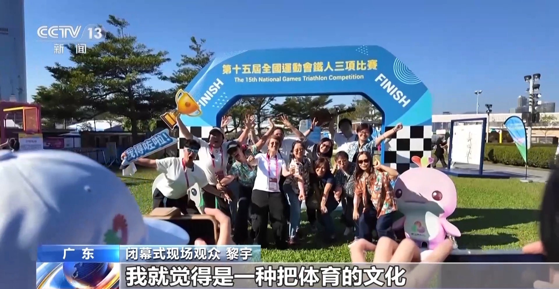 闭幕式现场观众 黎宇:无论是在赛场内,还是在商场里面,包括各种生活的场景当中,都可以看到很多香港、澳门的同胞,大家是其乐融融的,不仅是在赛场里面同台竞技,在生活当中也融合得非常好,我就觉得是一种把体育的文化、把我们湾区的这种亲切感,润物细无声地融合到大家的生活当中。