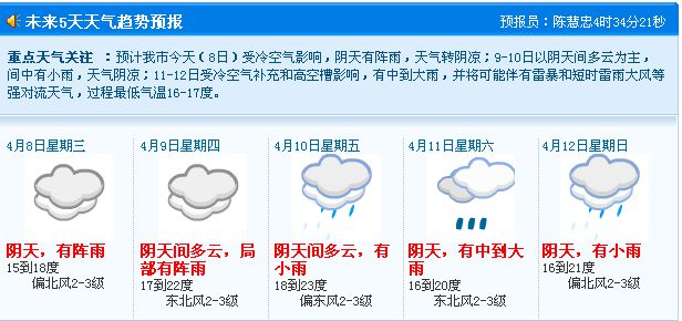 东莞阳光网讯 据东莞市气象局预测,从今日(4月8日)开始,东莞天气将趋于不稳定,有阵雨或雷阵雨天气,夜间开始转清凉。其中,今日气温最低为15℃。