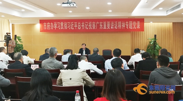 东莞阳光网讯(全媒体首席记者 林泽珊)今天(23日)上午,东莞市委副书记、市长肖亚非来到市府办综合二科党支部,以学习贯彻习近平总书记视察广东重要讲话精神为主题,为支部党员上了一堂精彩的专题党课。肖亚非强调,要从习近平总书记重要讲话精神中汲取强大力量,不断增强服务、进取、效率、担当等四种意识,全面提升府办系统的执行力和战斗力。