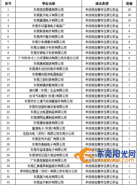 东莞2018年度公积金执法情况公布 7单位被罚35万
