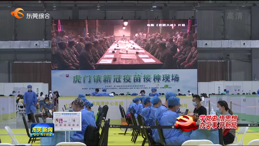 虎门镇文化服务中心则是将学党史与办实事结合起来,在虎门会展中心新冠疫苗临时接种点留观区播放红色电影。影片目录包括《建党伟业》《遵义会议》《沪上风云》等经典影片,留观区的接种市民看得十分入迷,被影片中激动人心的情节和场面吸引。