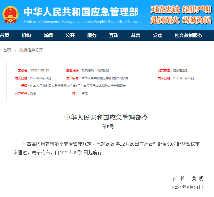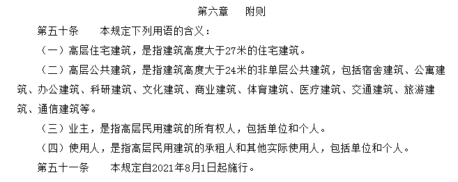 近日,应急管理部公布《高层民用建筑消防安全管理规定》,其中提到: