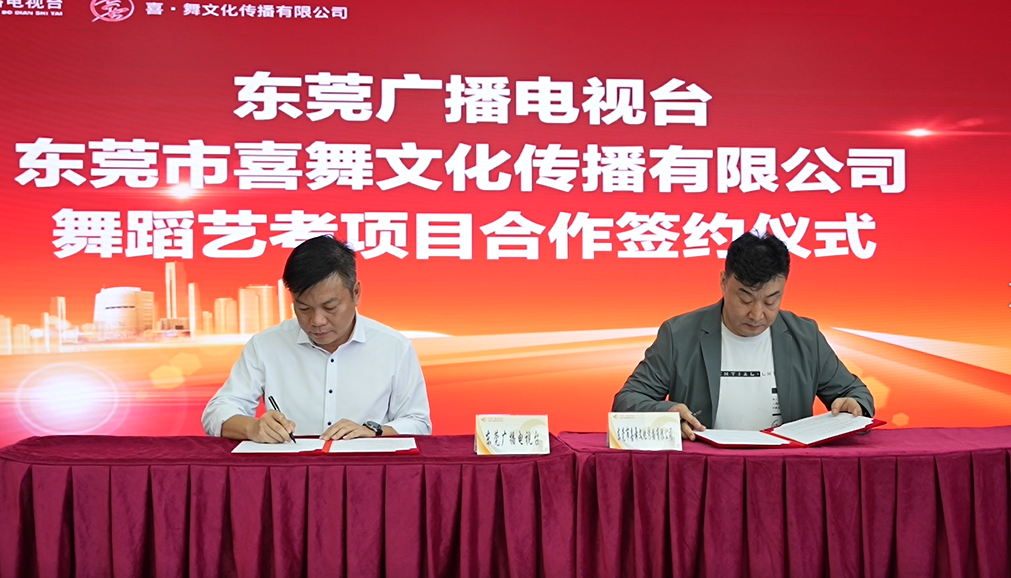 为打造高水平的艺术专业项目,多元化发展产业经营,把更多热爱艺术的孩子送上梦想的艺术舞台,4月28日上午,东莞广播电视教育发展有限公司与东莞市喜舞文化传播有限公司正式签约,双方合作开办东莞广电舞蹈艺考培训项目。东莞广播电视台党委书记、台长黎树根,东莞市喜舞文化传播有限公司总经理张睿出席签约仪式。