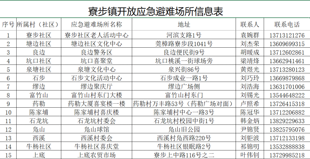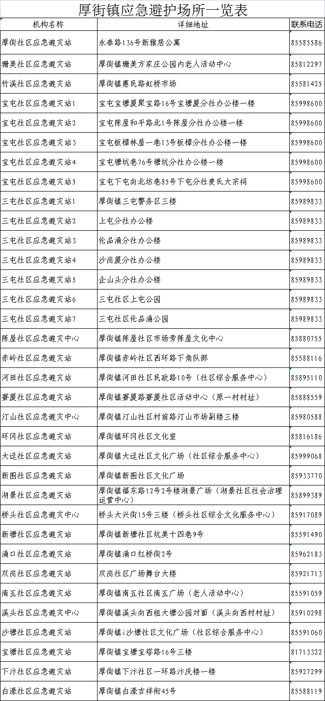 塘厦镇应急避难场所即日开放,有需要的人士可直接前往,如果发现身边有人需要,也可以协助其前往应急避难场所。
