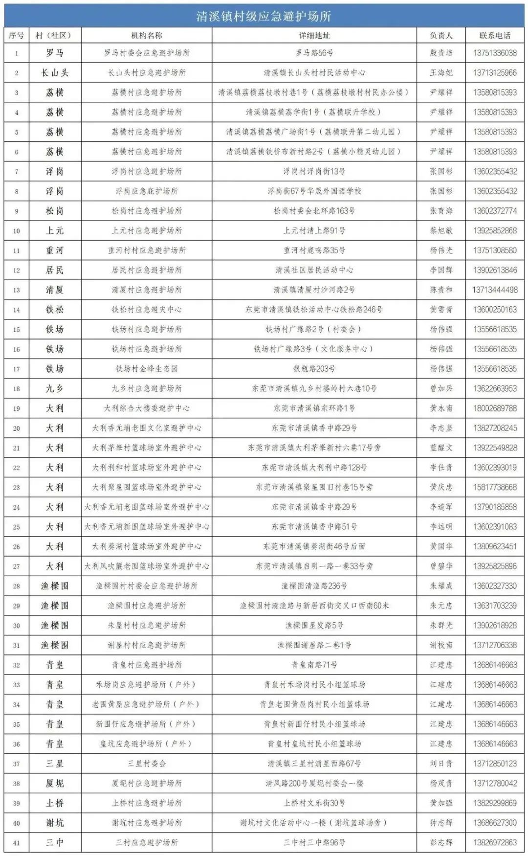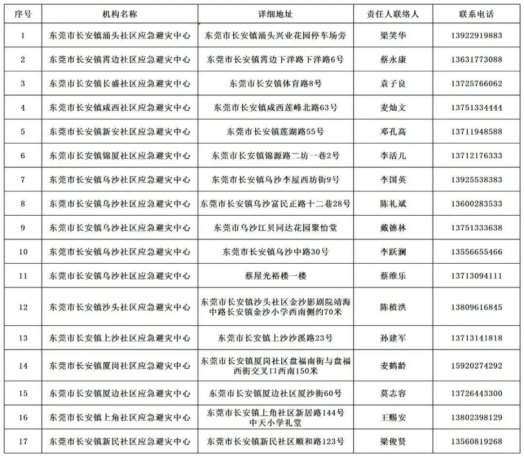 为切实保障人民群众生命安全,及时为危险区域群众提供应急避护,目前,长安镇17个村(社区)的应急避护场所已开放,24小时为有需要的市民提供帮助,有需要的群众可以前往。