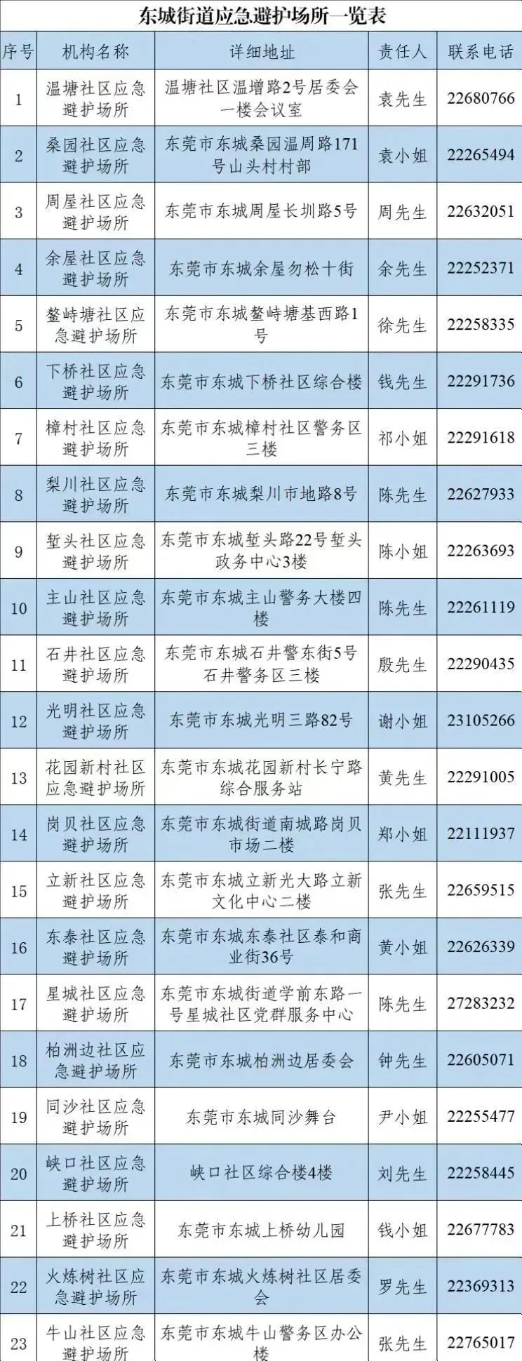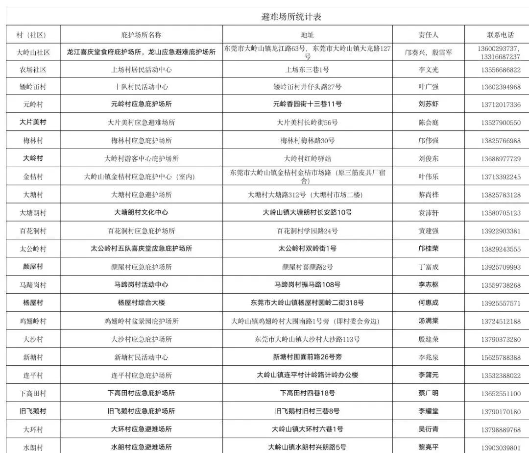 为做好防风防雨工作,从即日起,大岭山镇23个村(社区)应急避难场所全面开放,为街头流浪人员、困难人员和有需要的人士提供临时避风避雨救助。
