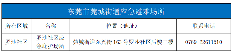 目前,受台风“泰利”影响期间,莞城街道减灾委针对台风的影响作出全面部署,从即日起对外开放1个应急避护场所,为独居老人、环卫工人、流浪人员等群体和有需要的人士提供临时避护救助,如有避护需要的群众,可拨打应急避护中心联系电话寻求救助。