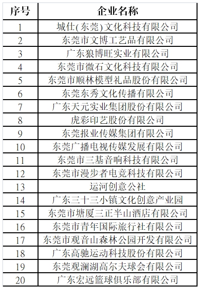 12月8日,2023年东莞市文旅体企业20强颁奖典礼举行,上榜企业名单(排名不分先后)如下: