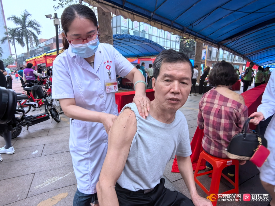 在万江医院的康复医学科义诊摊位,不少老年居民前来进行健康咨询。患肩周炎的罗先生表示,医生了解他的病情后,很快给出了针灸诊疗方案和护理建议,“医生来到家门口看病,我们不仅能享受到免费专家医疗服务,还能享受有针对性的专业健康指导。”