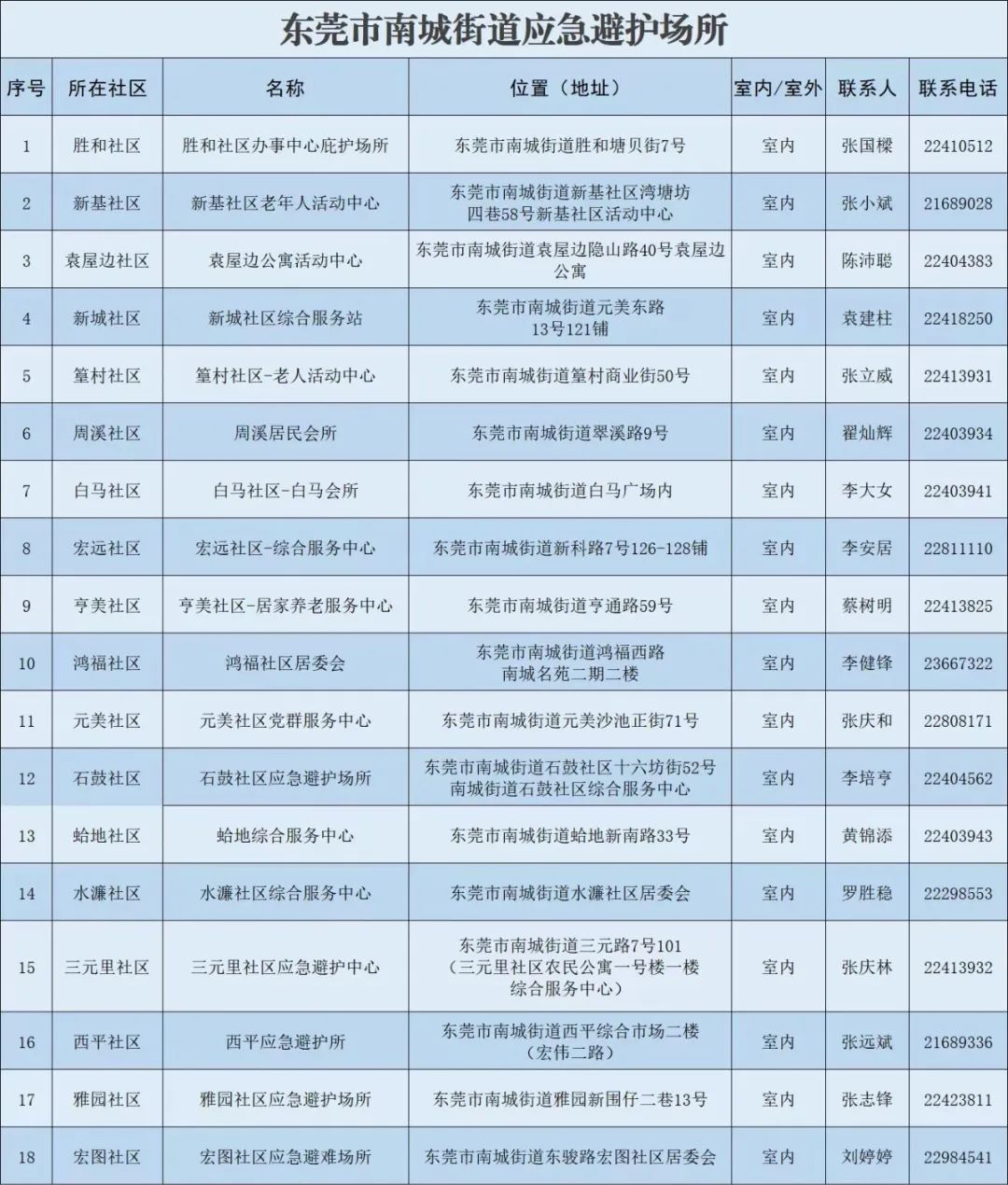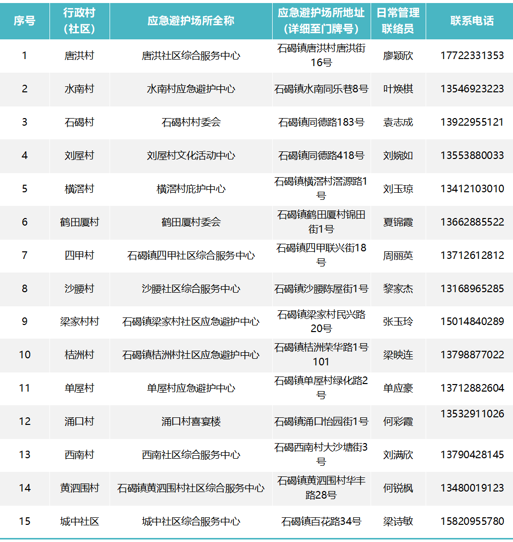 应急庇护场所联系电话:22611510