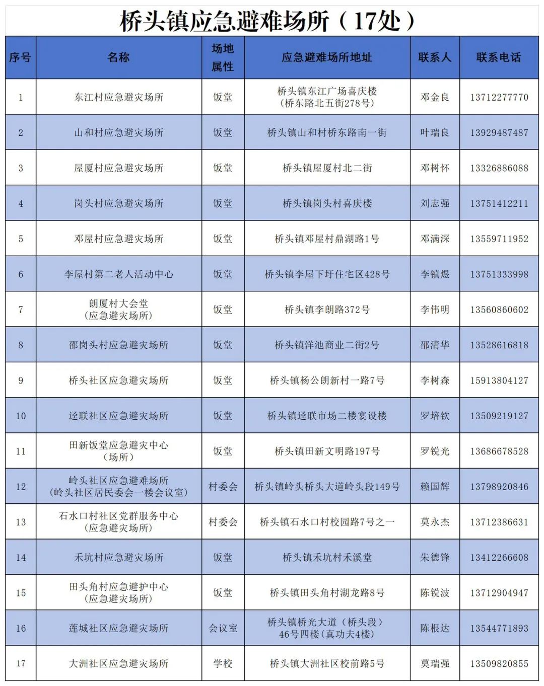 桥头17处应急庇护场所已对外开放,有需要的市民可随时前往寻求帮助。
