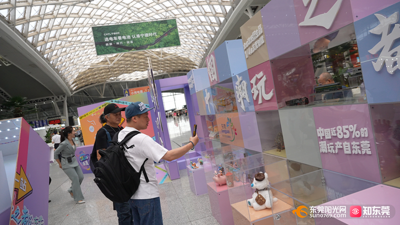 活动现场,一组“多巴胺”色系的潮玩艺术装置吸引许多旅客驻足。这些作品从热门原创IP到模型手办、从动漫衍生品到创意周边,生动展现东莞青春、潮流、时尚、活力的城市形象,同时也向广大旅客发出“五一”假期“潮”游东莞的邀请。据介绍,潮玩艺术快闪展将持续展出至5月28日。