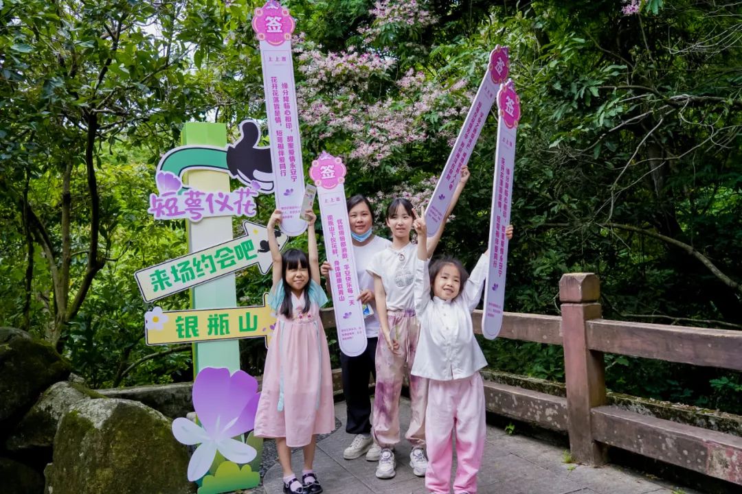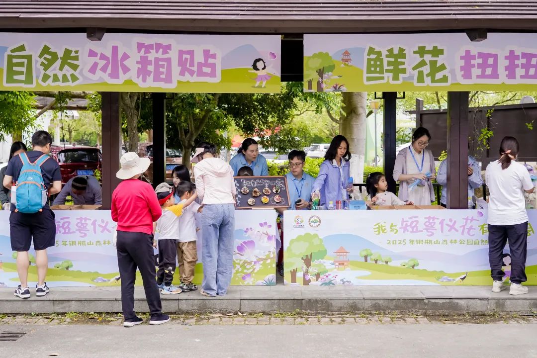 初夏的银瓶山森林公园,层林叠翠,鸟语盈耳。5月11日,以“我与短萼仪花有个约会”为主题的第三期自然教育活动展开。现场游客及提前招募的30组家庭共约150人,在青山碧水间开启了一场沉浸式生态探索之旅,通过创意手作、趣味游戏与知识互动,共赴自然之约,厚植生态文化之根。