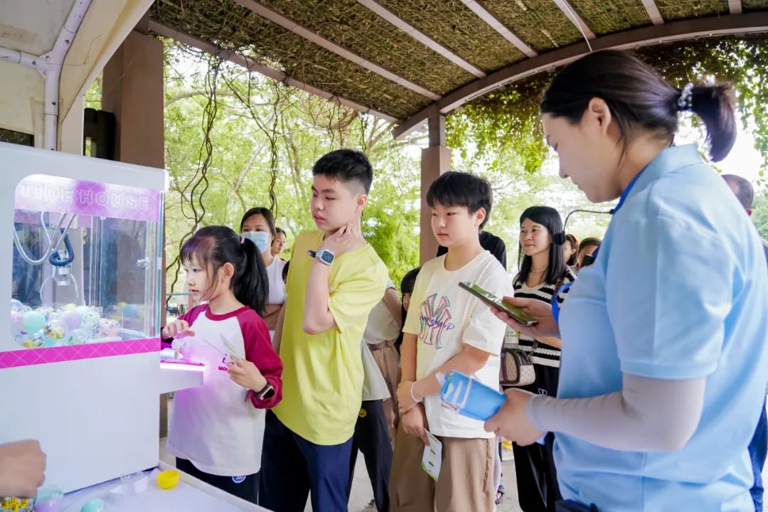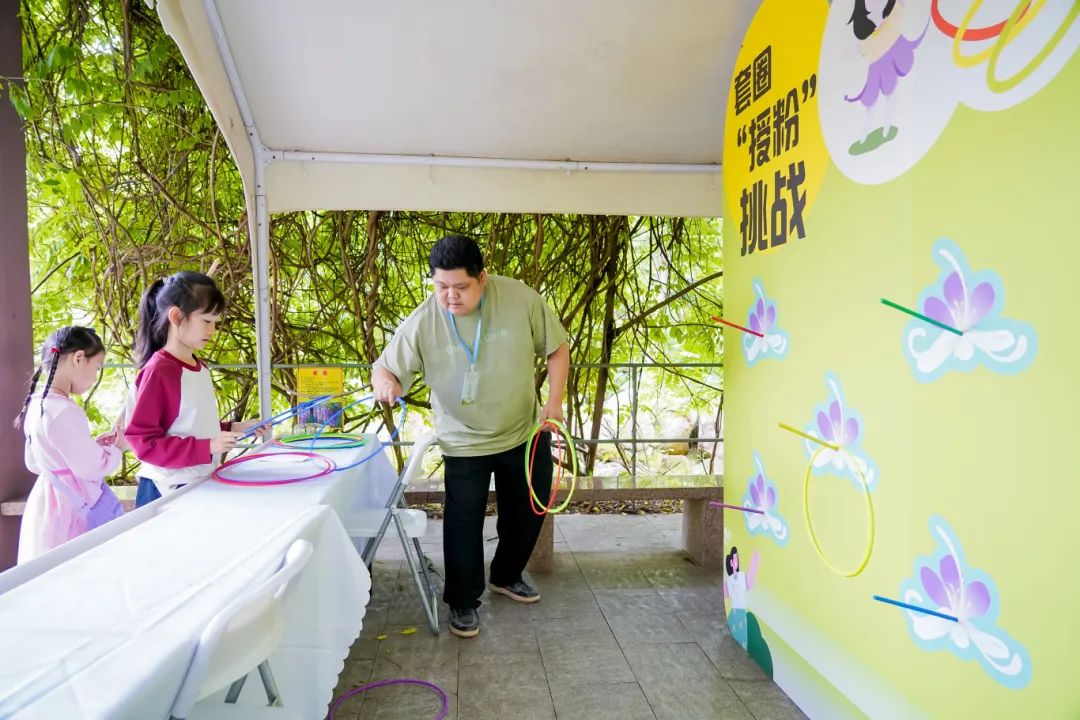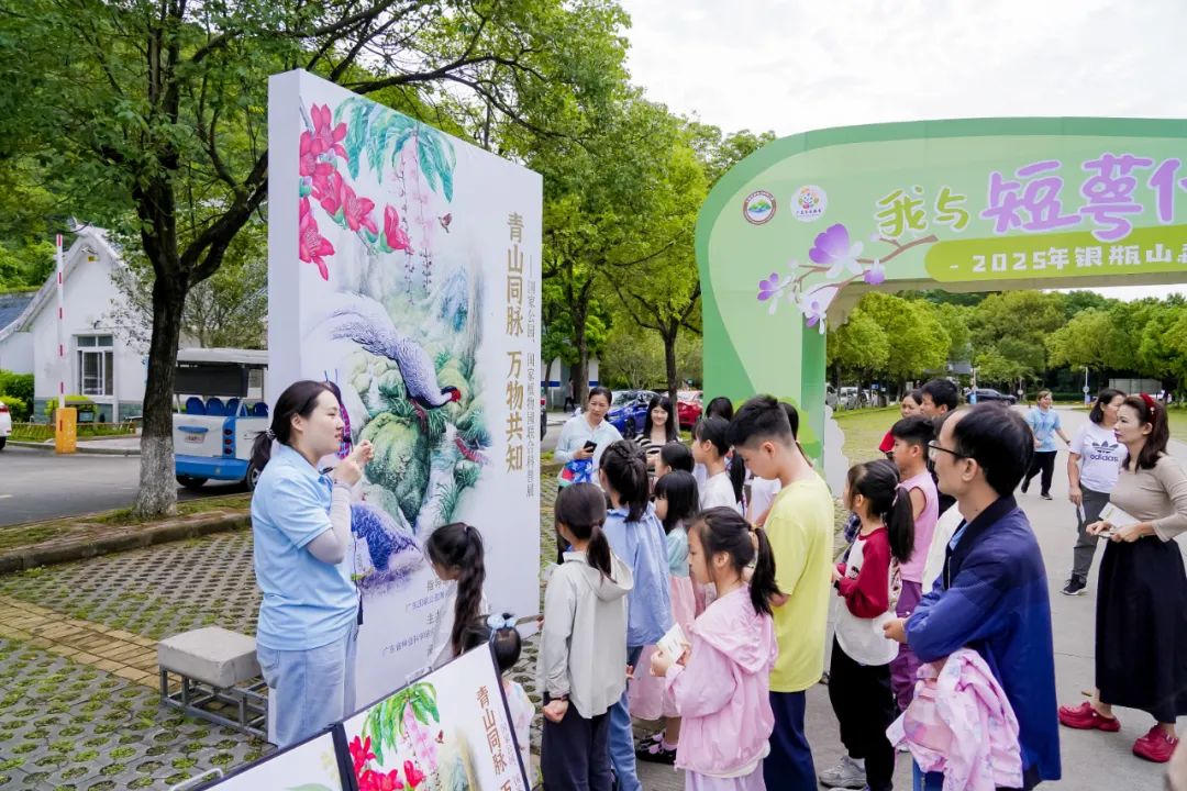 本次活动特别设置了“青山同脉 万物共知”自然教育课堂,推出“国家公园✖国家植物园”联合科普展,在绿荫怀抱下融入生态知识。“小朋友们,短萼仪花是我们公园的明星物种,大家知道它是典型的“变色花”吗?”“你们知道我们书本上常见的画眉也是国家二级野生保护动物吗?”在自然导师金毛狗的引导下,30组亲子家庭围聚在科普展板前,通过与导师的一问一答,探秘生态系统的运行规律,深化了生物多样性保护及生态平衡重要性的理解。同学们稚嫩的笑声伴奏着此起彼伏的蝉鸣声, 是这个初夏最动听的音符。