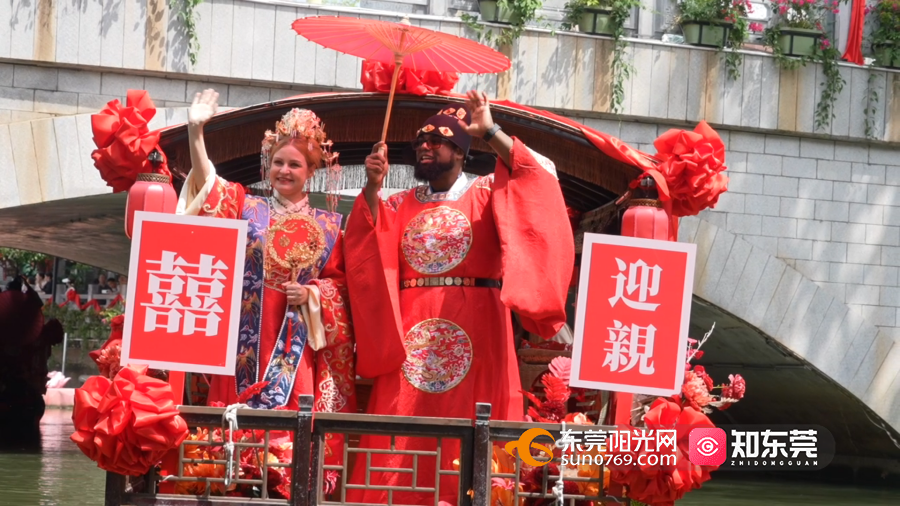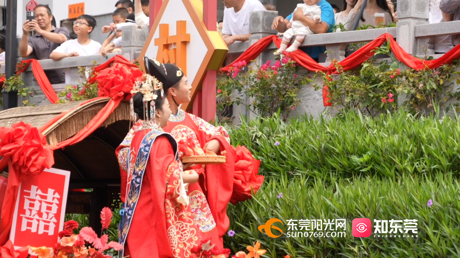据统计,这场水乡婚礼通过“东莞发布”视频号、抖音、“魅力道滘”视频号等平台进行直播,观看量超过96万。另外,全镇18个户外LED显示屏也同步直播婚礼盛况,让整个道滘沉浸在喜庆的氛围中。