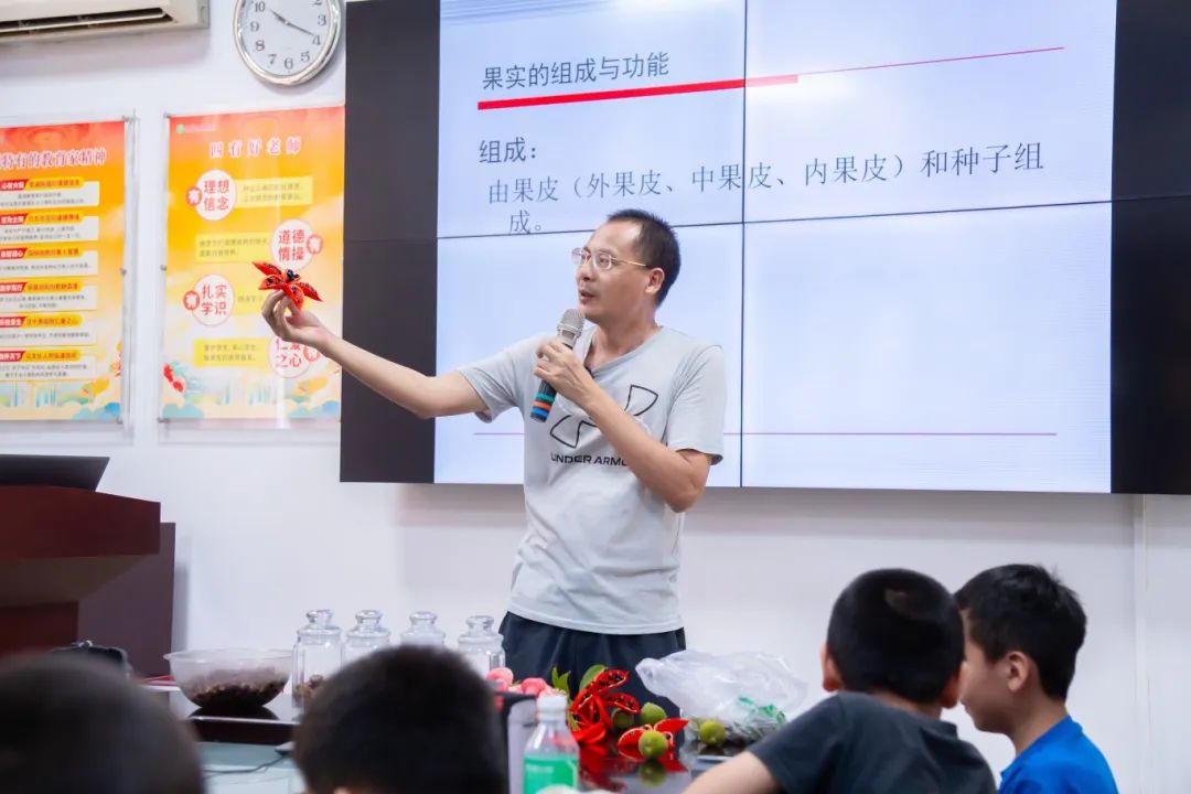 活动伊始,园林高级工程师柯周荣通过生动有趣的科普讲座,向家长和孩子们介绍了乡土植物的定义、生态价值及种子的生命密码,现场展示短萼仪花、假苹婆、榴玉蕊等植物的果实和种子。孩子们认真聆听、积极提问,现场互动氛围热烈。