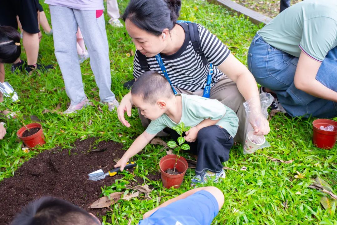 活动中,孩子们化身“小小植物学家”,每个家庭还领养了一株冷水花小苗,现场完成移栽,并领取观察日记本,承诺记录幼苗的生长变化。