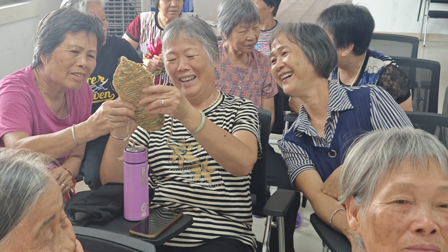 今年5-6月,7名“绘阅团”成员分别走进了村史馆、敬老院、老干部活动中心、幼儿园等地,开展了8场“老友记”绘本阅读活动。他们用本地方言讲述着一个个充满童趣的绘本故事,长者们听得津津有味,不时发出会心的笑声;他们还设计了精致插花、亲子手工、人生分享、集体庆生、共唱红歌、回顾草鞋、祖孙共读等延伸活动,让长者们在动手动脑中感受快乐,在交流分享中增进感情。