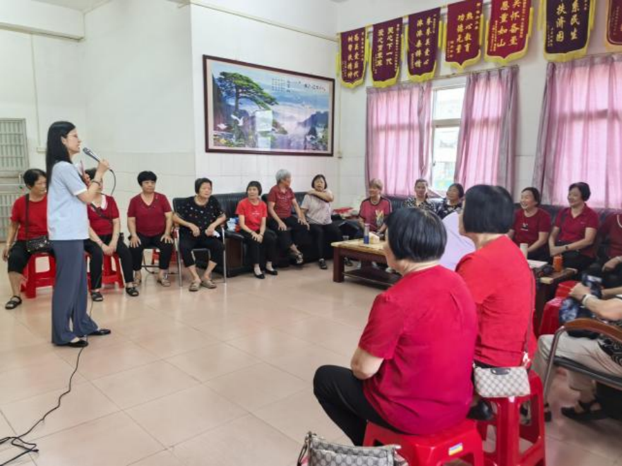 ▲谢岗绘本馆林斯梅老师在谢岗老人活动中心开展“唱山歌”主题绘本活动。