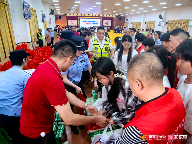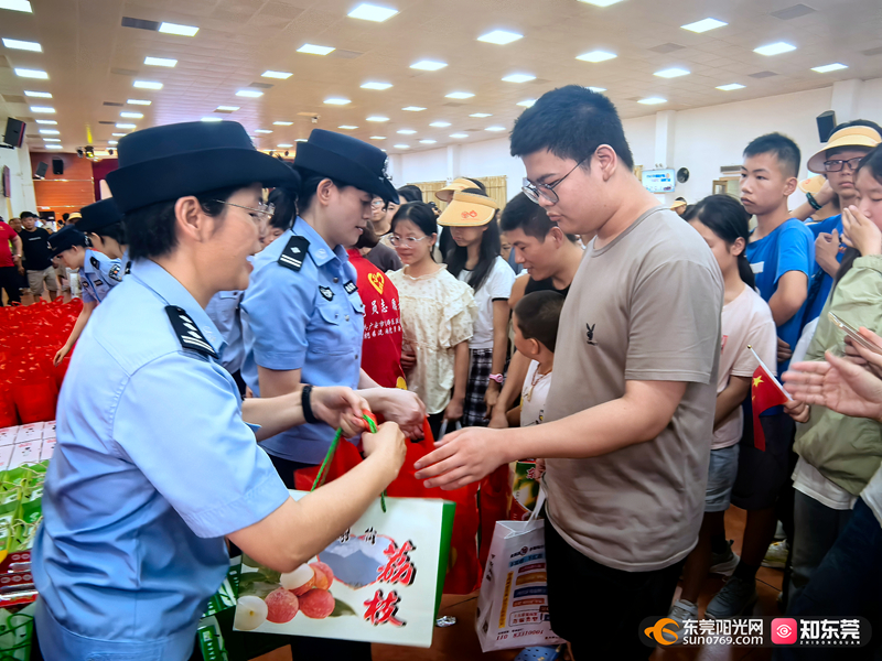 在活动现场,大朗镇还贴心地为“小候鸟”们准备了荔枝、酸奶和糖果礼品。在当天的“落地第一课”安全课堂上,大朗公安聚焦防诈骗、防侵害、防溺水、交通安全等核心话题,结合发生在身边的鲜活案例,帮助“小候鸟”正确分辨各类侵害行为,提高他们的暑假安全意识。