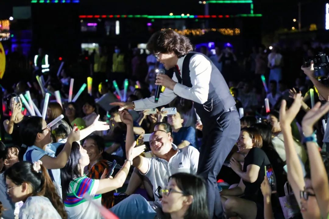 ▲潮流东莞·火柴盒音乐节“黄金年代”粤语流行歌曲演唱会,廖百威与现场观众互动