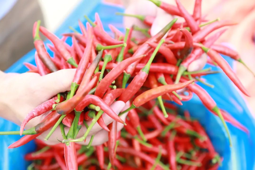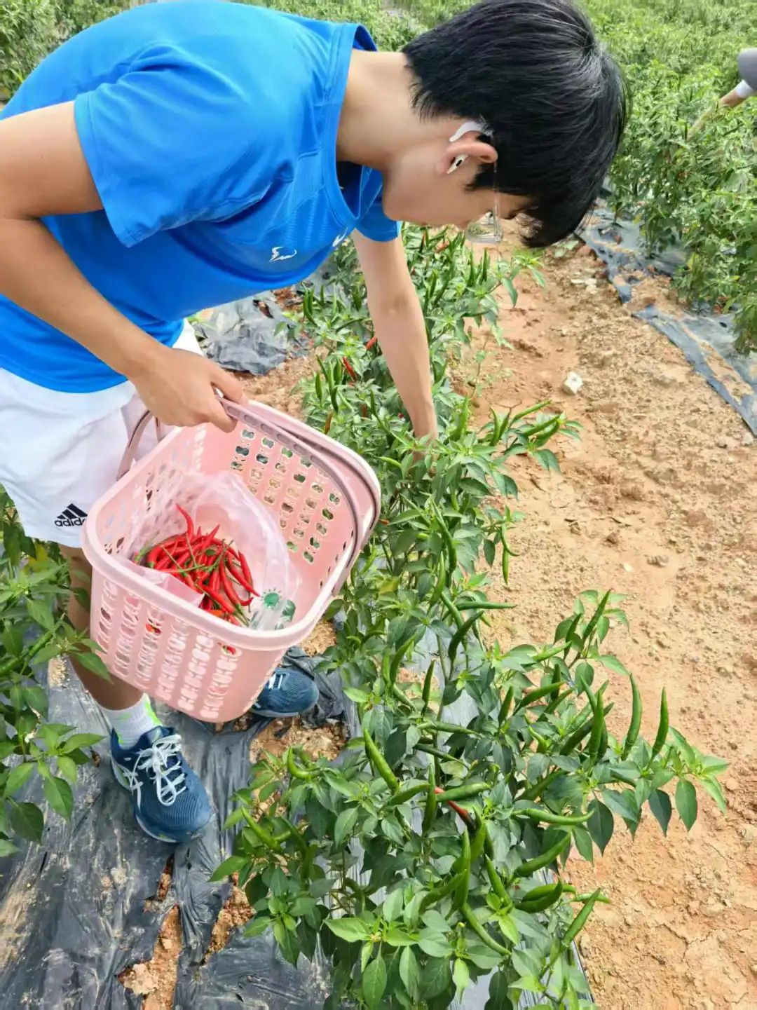 踏入塘厦南部生态园,一排排绿色的辣椒树映入眼帘,仔细一瞅,或红彤彤或绿油油的小米辣正挂在枝头,还有黄澄澄的灯笼椒都在阳光得照射下散发着诱人的光泽。暑期来临,不少学子去到田间,体验丰收采摘的乐趣。