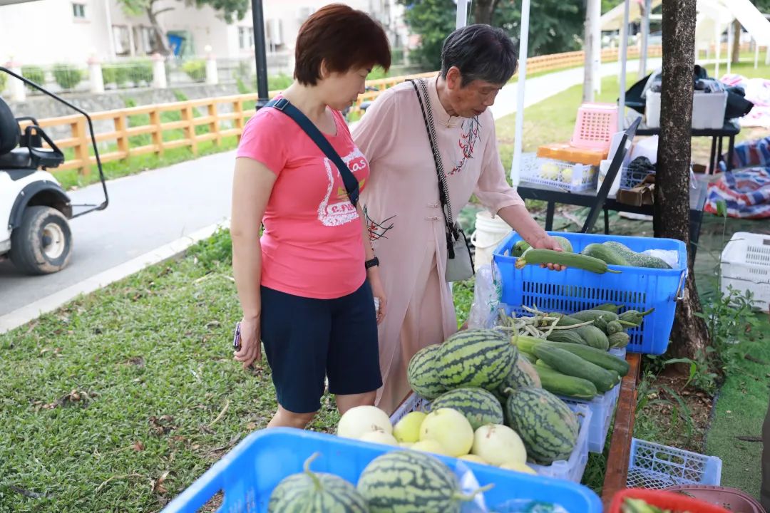 成熟的瓜果则被管理员摘下,集中销售,不少游客正在驻足挑选。