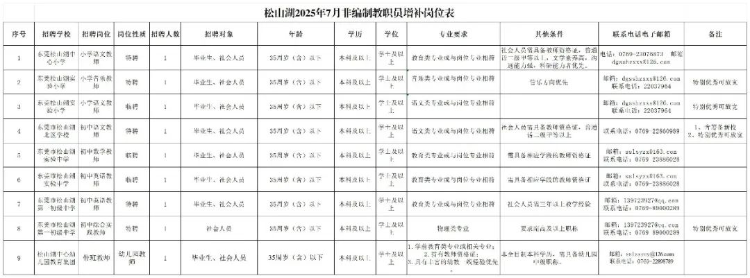 因教育发展需要,东莞松山湖7月本地专场教职员岗位招聘需增补9个岗位具体岗位如下: