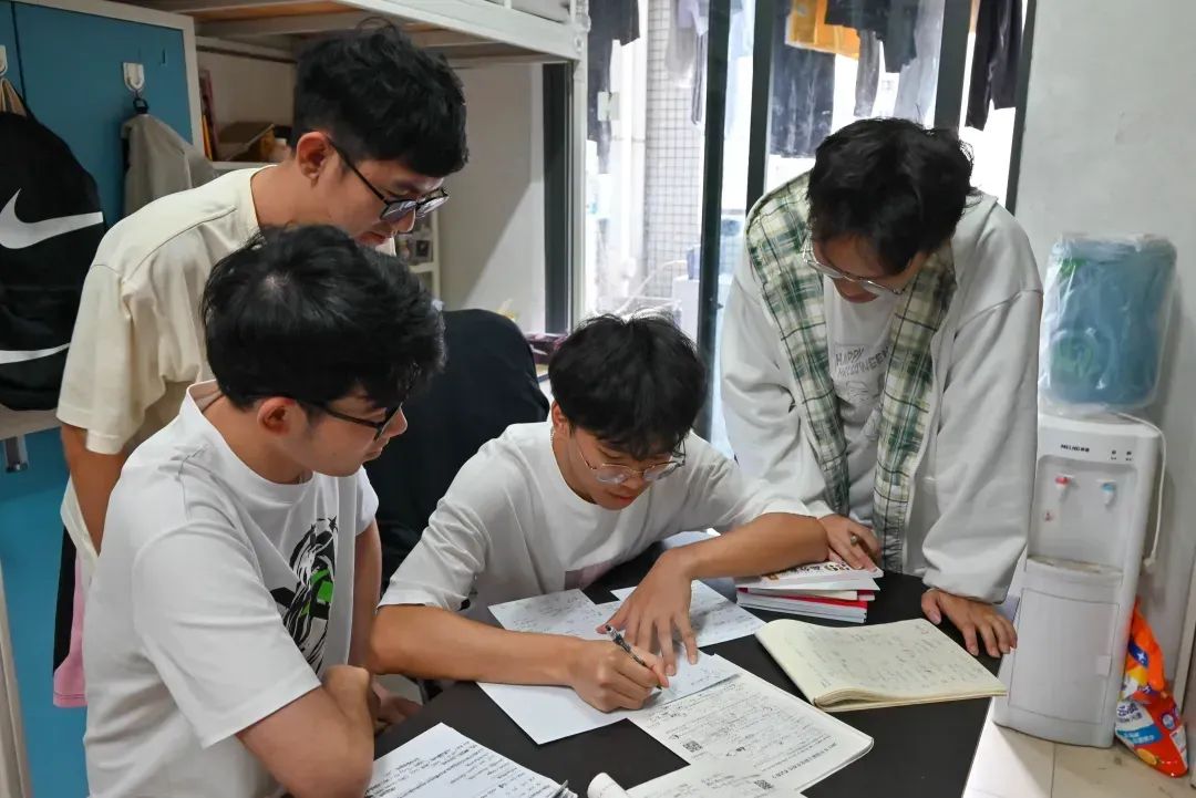 备考是一场艰苦的持久战,他们迅速形成高效的“作战模式”:统一作息、早出晚归、按时熄灯,学习节奏高度同步。资料信息无私共享,遇到难题回到宿舍便展开激烈讨论。甚至一人疲惫时,其他人会主动帮忙带饭来节省大家的时间。点滴细节都凝聚着互助的温情。
