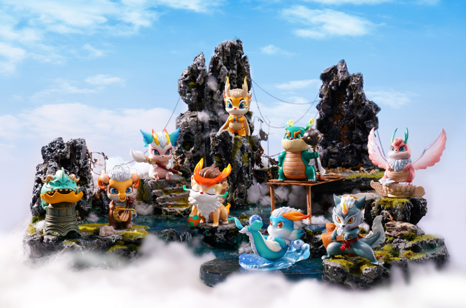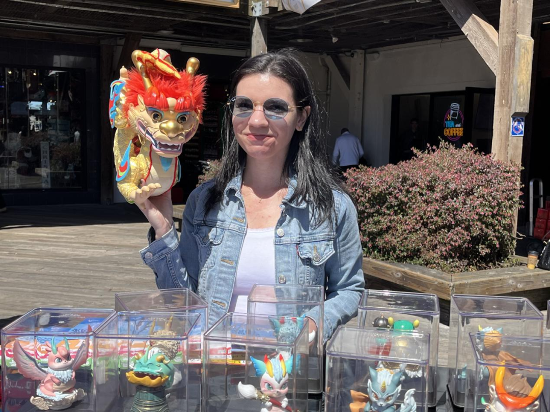▲吉祥龙、龙生九子等潮玩在旧金山举办的“风起国潮 粤动金山”潮玩展活动亮相