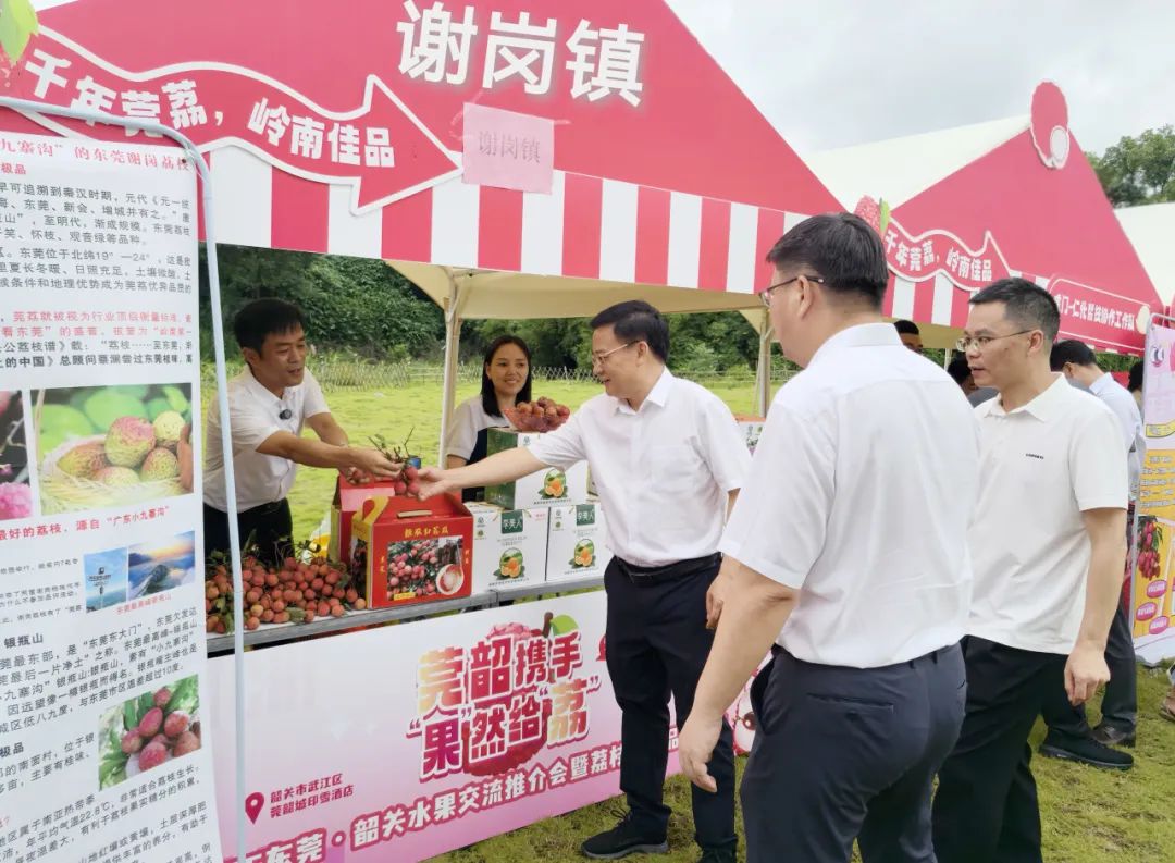 谢岗镇农林水务局依托莞韶帮扶、东西部协作平台,通过线下品鉴、直播带货等方式助销荔枝。6月20日,“莞韶携手‘果’然给‘荔’”东莞荔枝展销会在广东省韶关市启幕。