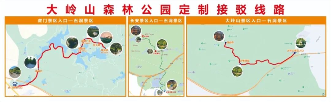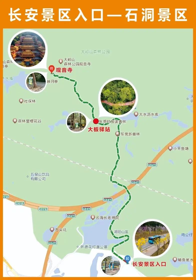 目前,大岭山森林公园大岭山、长安、虎门景区的主入口均有接驳线路,方便大家一键开启轻松游园模式。