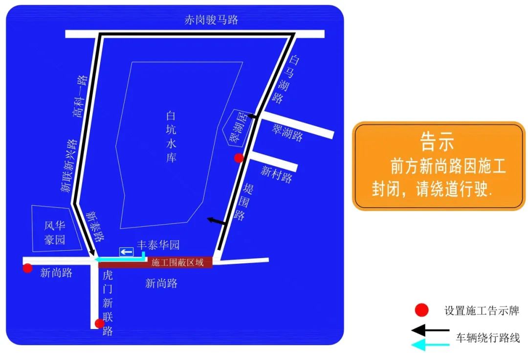 因G4京港澳高速广州火村至东莞长安段改扩建工程新联枢纽互通立交E匝道桥施工需要,桥梁桩基、承台、盖梁均在虎门镇新尚路既有路面上,需对新尚路丰泰华园山庄西门至东莞路桥投资有限公司第一管理处路段进行全封闭施工。根据施工安排,将于2025年7月20日至2025年12月31日对该路段进行全封闭施工,丰泰华园山庄西门、南门可正常出入。请广大司乘人员密切关注交通动态,合理安排出行计划和选择出行路线。因施工给您带来的出行不便,敬请谅解。现就具体管制情况公告如下: