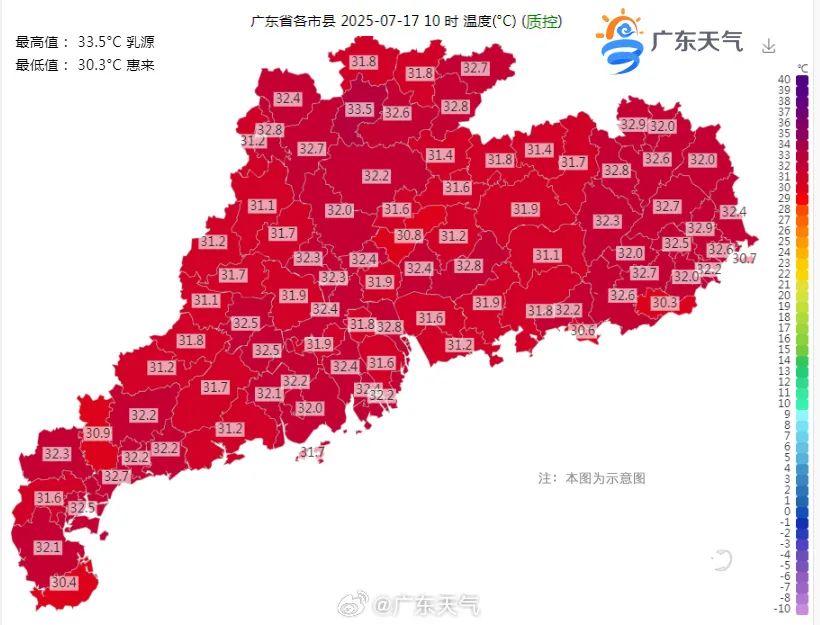 东莞市气象台7月17日10时44分将高温黄色预警信号升级为橙色,预计今日我市最高气温将达到37℃左右,请注意防暑降温。