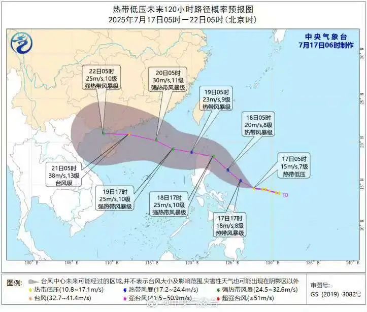 热带低压是台风的最低级形态,增强至热带风暴时将获得命名。根据中央气象台的预测,该热带低压最强将达到强台风级别,并朝着广东“奔来”。